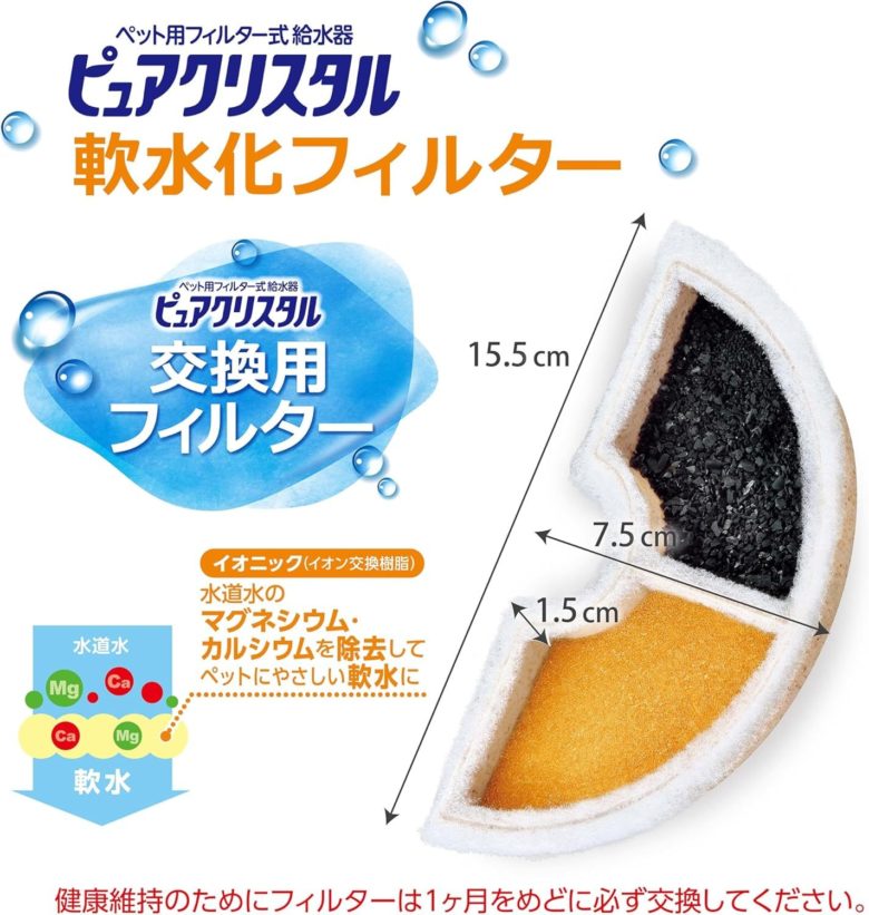 ピュアクリスタル半円フィルター 猫用には、活性炭フィルター タイプと軟水化フィルタータイプがあります。